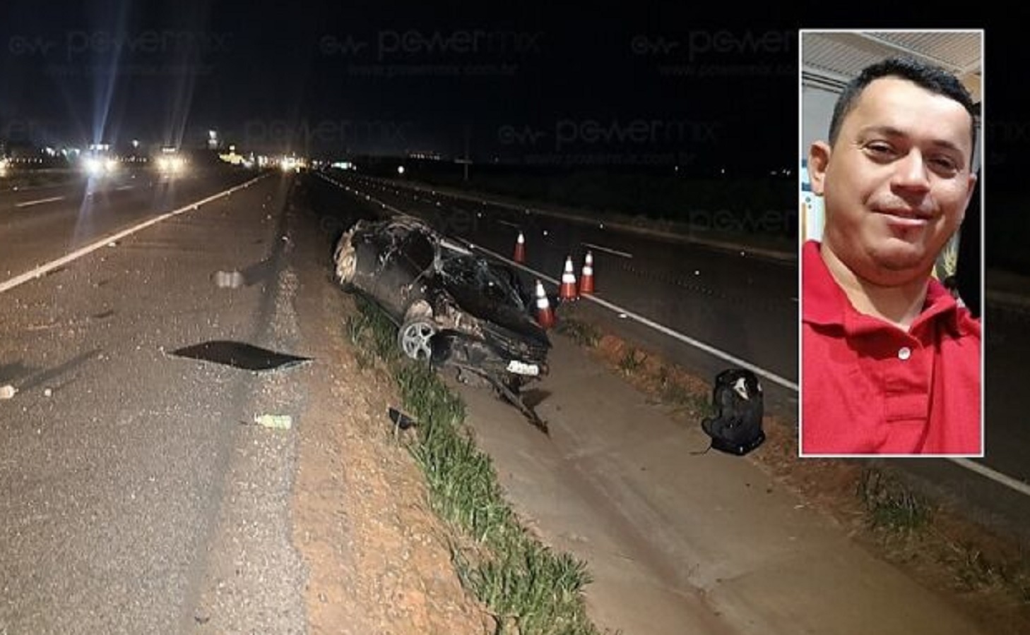 Vanderson Oliveira Azevedo, de 33 anos, morreu em um grave acidente no km 592 da BR-163, na noite de desta segunda-feira (20), em Nova Mutum (141 km de Cuiabá). No carro, um Toyota Corolla, estavam também a esposa e os filhos da vítima, de 8 e 1 ano, que foram socorridos e encaminhados a um hospital.