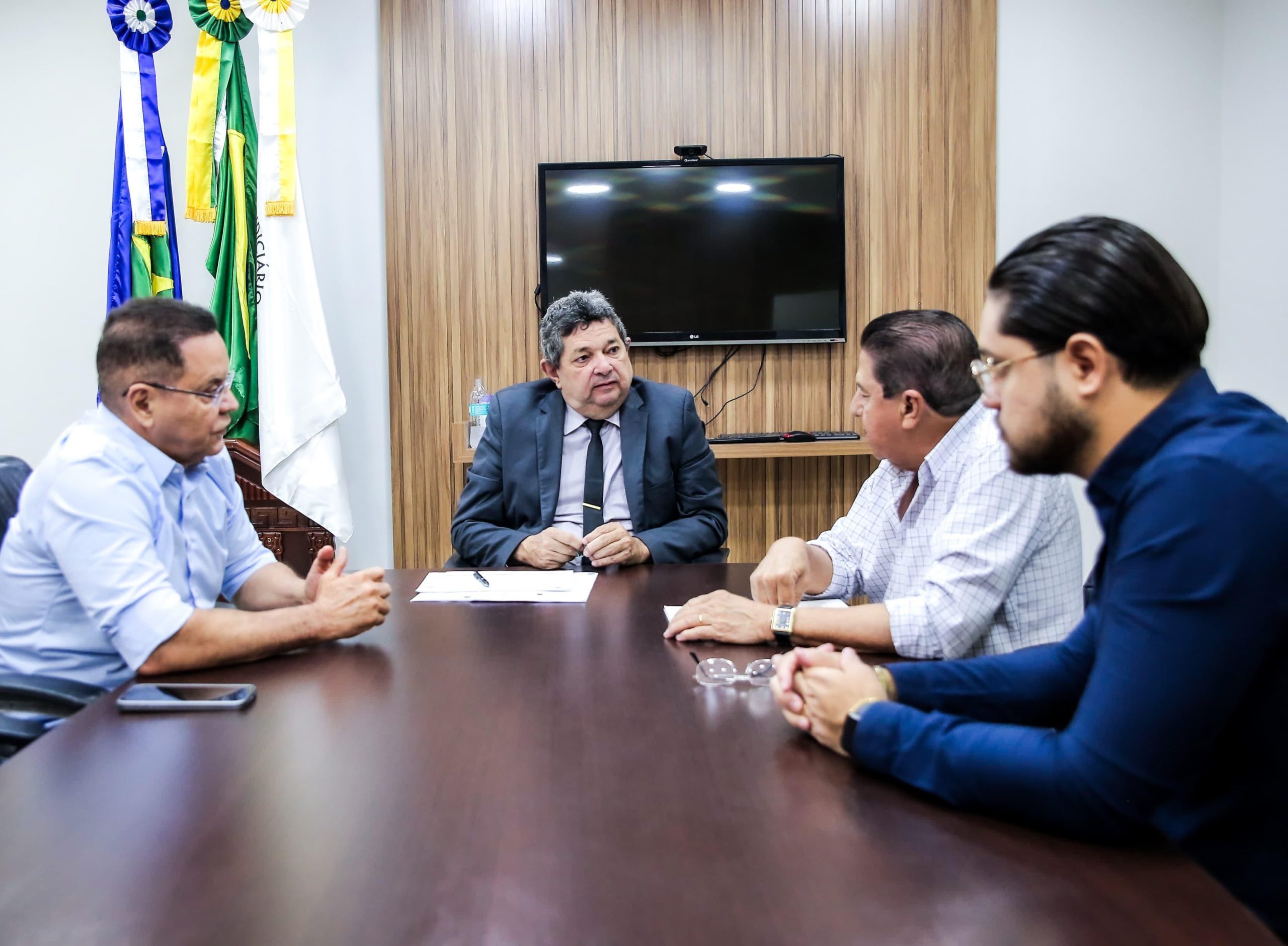 Em reunião realizada nesta segunda-feira, 25 de março, o Corregedor Geral do Tribunal de Justiça de Mato Grosso, Desembargador José Luiz Lindote, o Deputado Estadual Eduardo Botelho, o Coordenador de Regularização Fundiária da Assembleia Legislativa de Mato Grosso (ALMT), Euclides Santos, e o Assessor Parlamentar Henrique Santos, discutiram avanços significativos nos processos de regularização fundiária no Estado.