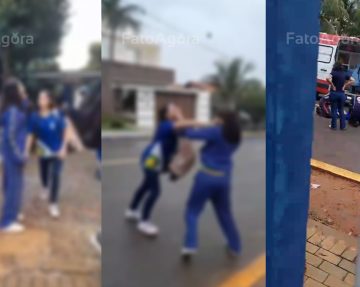 Durante a confusão, as duas entraram em luta corporal, com tapas e socos, e acabaram caindo no asfalto. Imagens gravadas por estudantes mostram o momento da briga. Enquanto as agressões aconteciam, outros alunos gritavam ao redor.