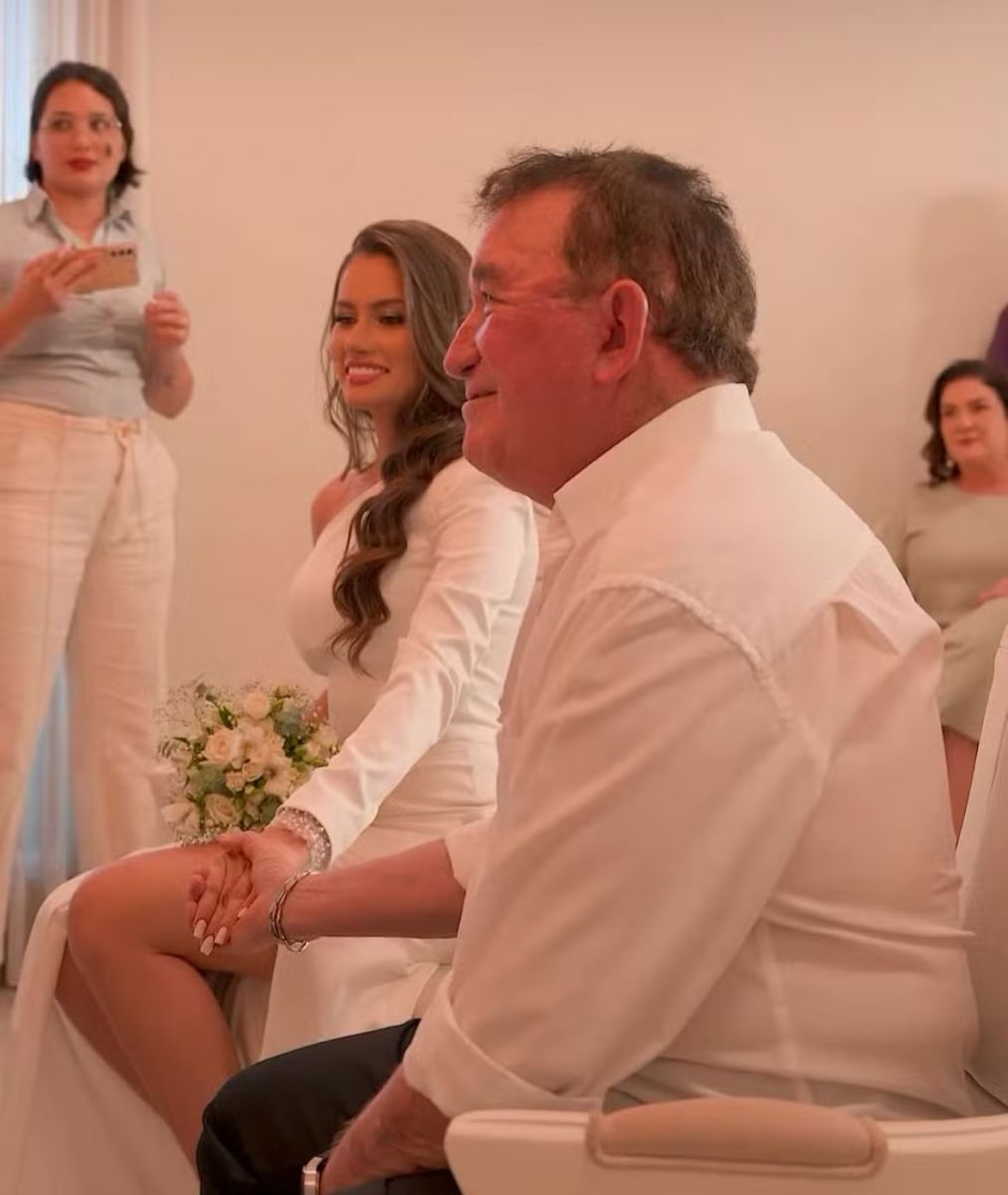 Em um vídeo, ela mostrou os bastidores de sua preparação para o momento e a celebração intimista que fizeram para celebrar a união. O casal, que possui uma diferença de mais de 50 anos de idade, assumiu o relacionamento publicamente no fim do ano passado. Calita é bióloga e Miss Mato Grosso 2024.