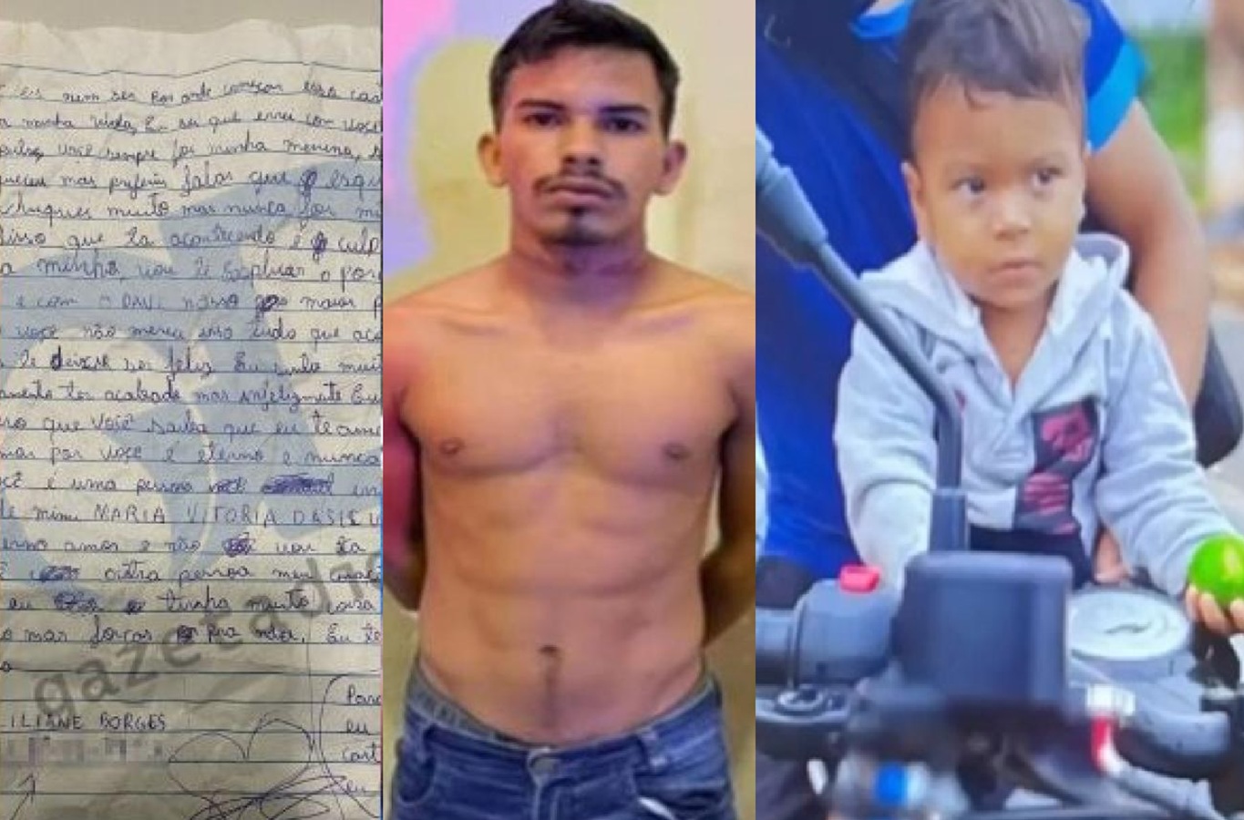 A carta deixada para familiares o segurança Rairo Andrey Borges, de 21 anos, relatou um profundo abalo emocional antes de matar o próprio filho, Davi Lucca da Silva Lemos, de 2 anos e 5 meses, em Sorriso (420 km de Cuiabá), na noite deste sábado (2). No texto, o jovem descreve sentimentos de perda, culpa e desespero, afirmando que não conseguiu lidar com o término com a ex-namorada, que já seguia em outra relação.