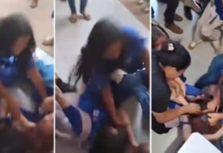 Um vídeo que circula nas plataformas digitais mostra as adolescentes no chão, trocando puxões de cabelo e desferindo chutes, enquanto outros estudantes aparecem tentando separar ou conter o confronto.