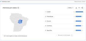 Segundo a plataforma, Colíder (633 km de Cuiabá) registrou índice máximo de interesse (100), seguida por Paranatinga (77), Poconé (73), Confresa (72) e Água Boa (71). O levantamento considera o interesse proporcional por município, o que indica maior engajamento relativo nessas localidades durante o período analisado. Quanto mais próximo de 100, maior o interesse.