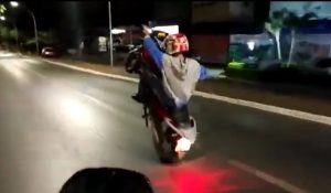 Aparecido empina na frente de policiais e leva tombo em MT