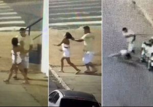 Câmera flagra homem agredindo a esposa em saída de festa; veja