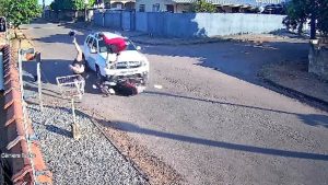 Mãe e filho ‘voam’ após colisão violenta entre motoneta e SUV