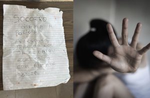 Mulher pede socorro em bilhete após ser trancada em casa; foto