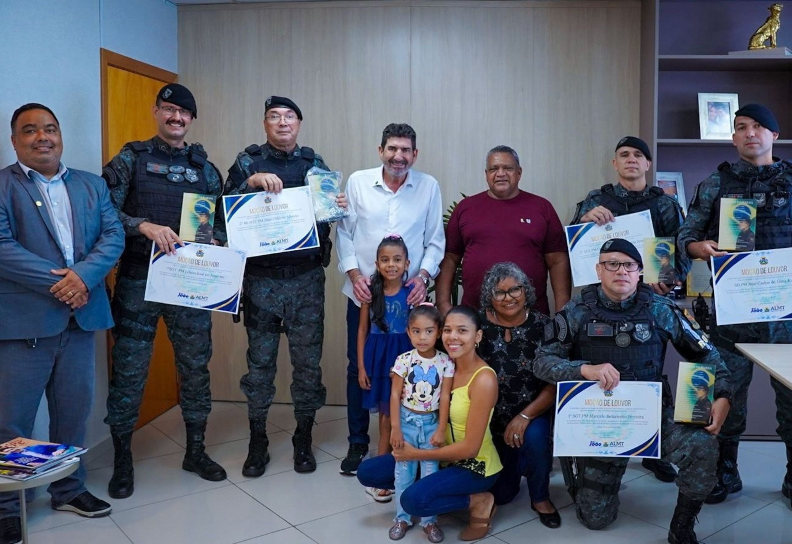 A emoção marcou a entrega de moções de homenagem realizada nesta quarta-feira (28), no gabinete da Primeira-Secretaria da Assembleia Legislativa de Mato Grosso (ALMT), aos policiais militares que salvaram a vida da pequena Lavínia, hoje com dois anos. A iniciativa foi do deputado estadual Dr. João (MDB) e reuniu familiares da criança, policiais homenageados e representantes da corporação, em um momento de forte comoção.