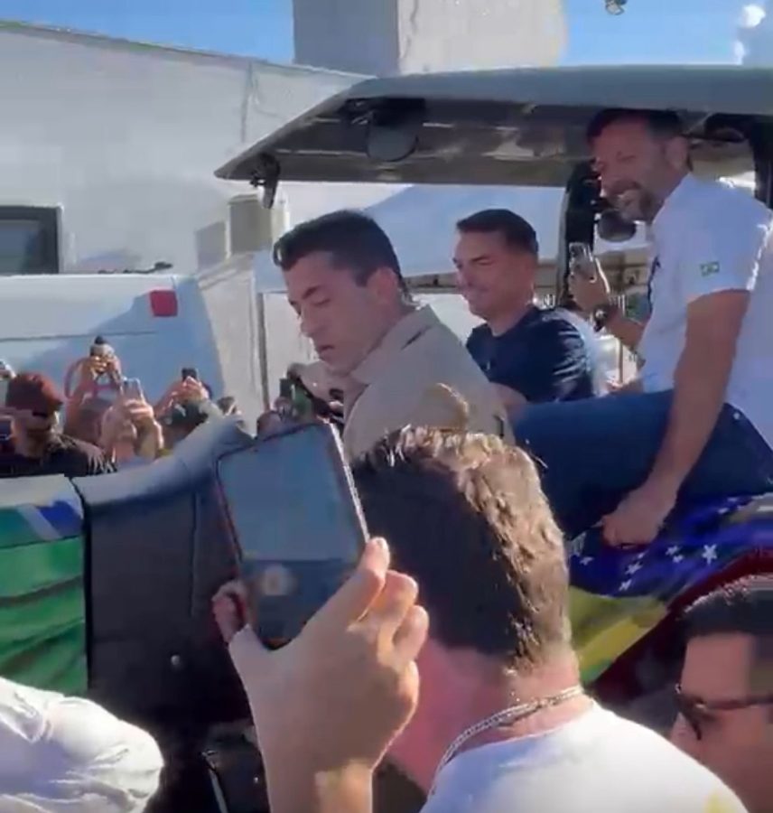 Candidato a Presidência da República, senador Flávio Bolsonaro (PL-RJ), andou de trator durante visita ao Norte Show, em Sinop (500 km de Cuiabá), na tarde desta quarta-feira (22). O equipamento tinha uma bandeira do Brasil estampado no capô.