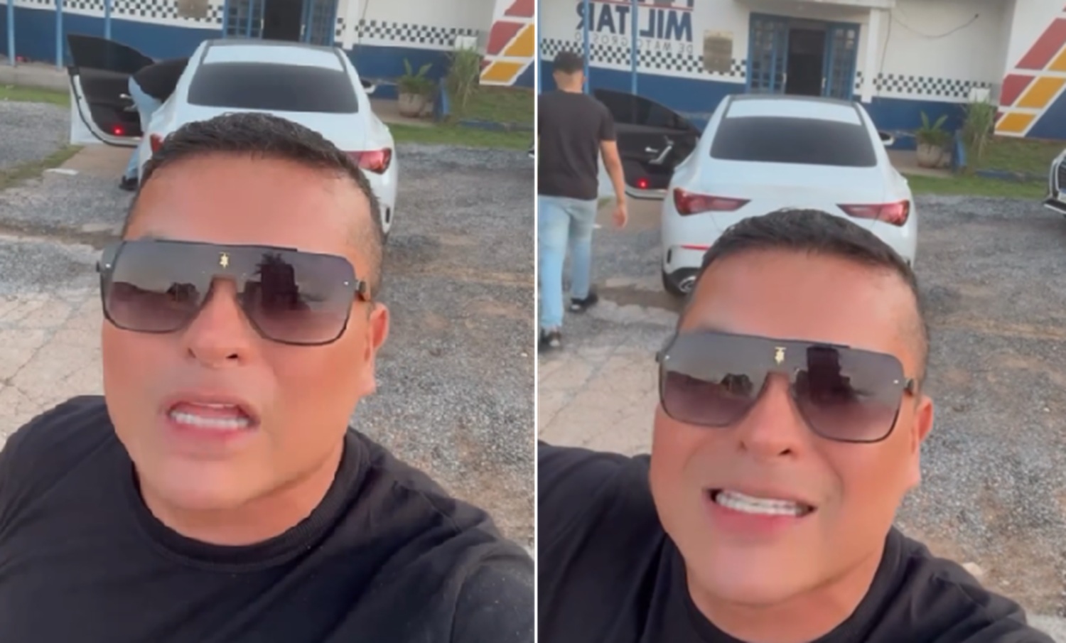 Nas redes sociais, o dono da casa de shows disse que passava em frente da Politec no momento que foi abordado por 4 bandidos, fortemente armados, em um veículo HB20 chumbo.