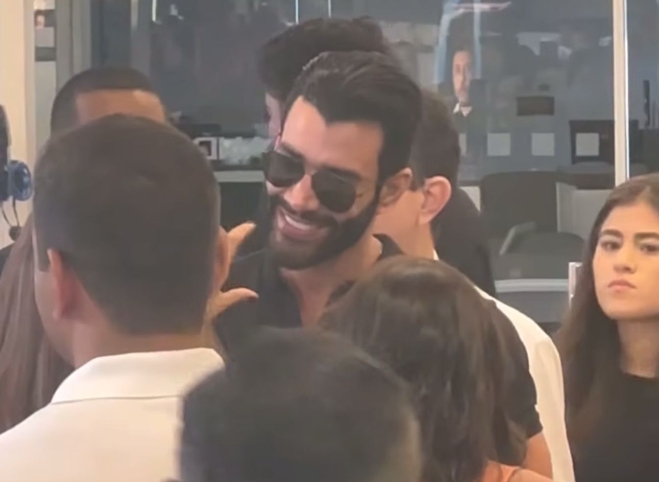 Um vídeo divulgado nas redes sociais mostra Gusttavo Lima sendo tietado por convidados e funcionários da empresa durante o evento.