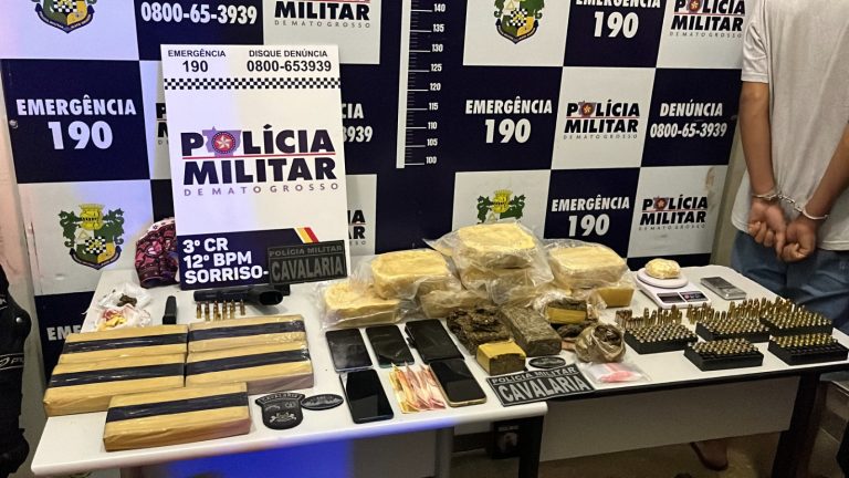 Uma grande quantidade de drogas, avaliada em mais de R$ 1 milhão, foi apreendida pela Polícia Militar em uma residência em Sorriso (420 km de Cuiabá). No local, um homem suspeito de envolvimento com o tráfico foi encontrado escondido dentro de um canil para tentar fugir da abordagem policial.
