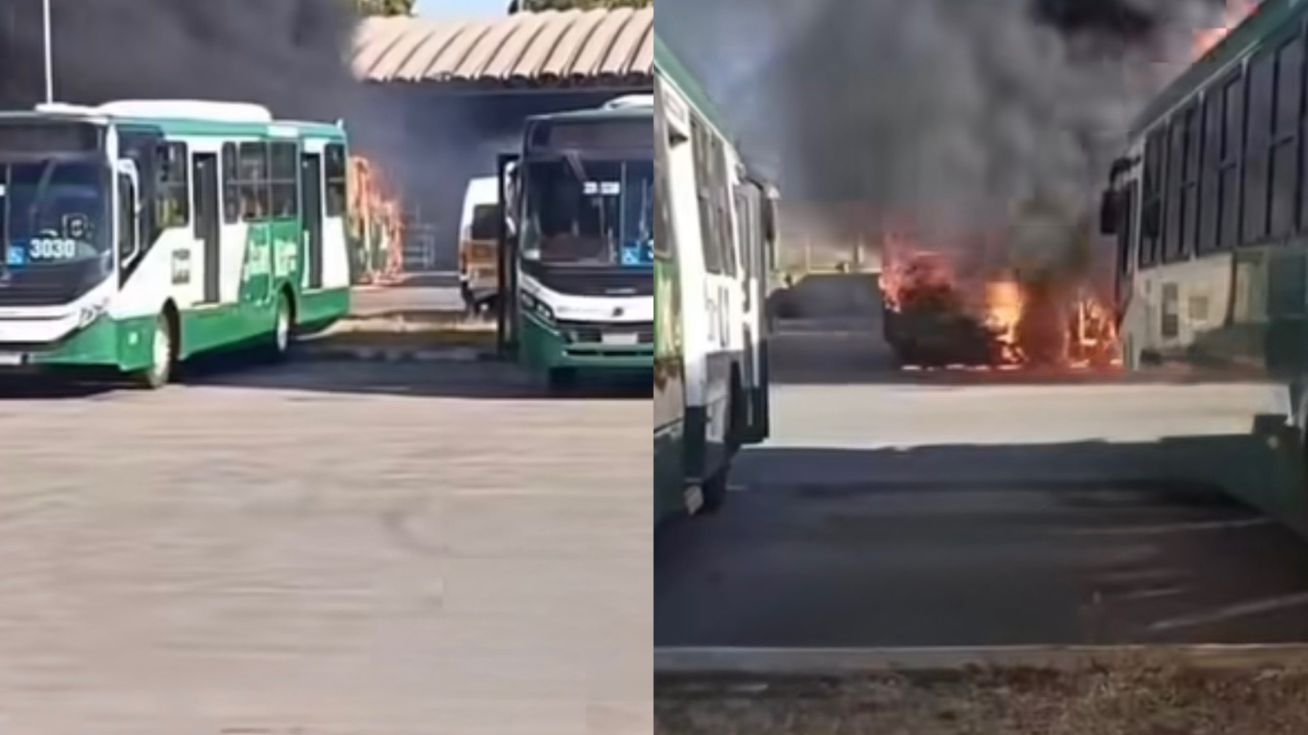 De acordo com as informações, 4 veículos do transporte coletivo já foram consumidos pelo fogo.
