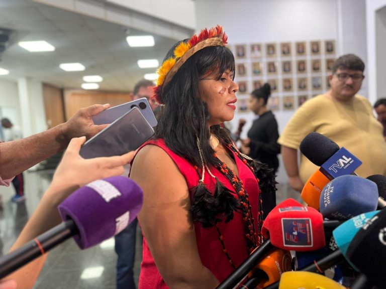 Ela também reforçou o papel fundamental das terras indígenas na preservação ambiental. “Onde tem água limpa? Onde há preservação? Nos territórios indígenas! Nós sabemos fazer manejo sustentável e produzimos vida”, completou.