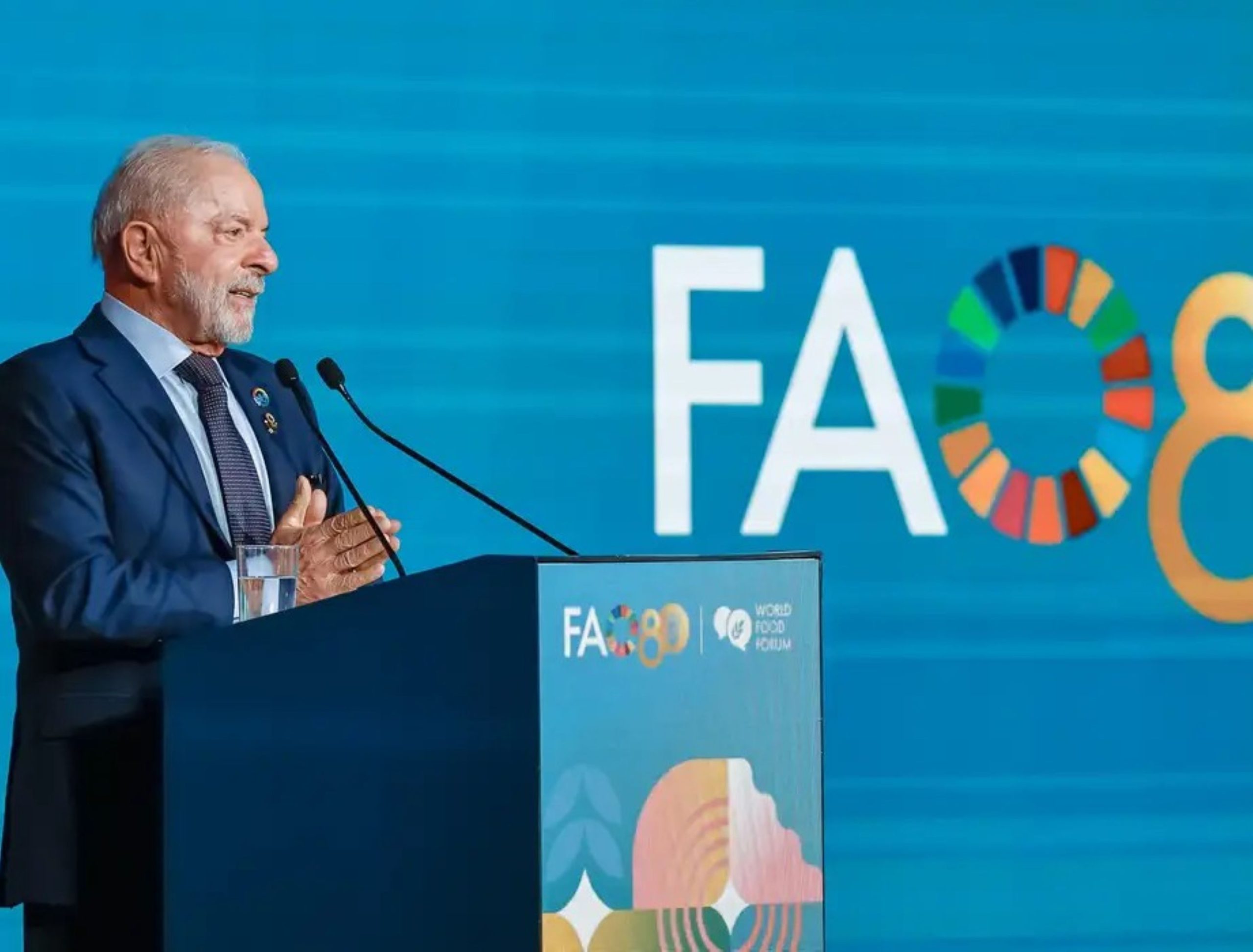 Lula está na Itália, onde participou da abertura do Fórum Mundial da Alimentação.