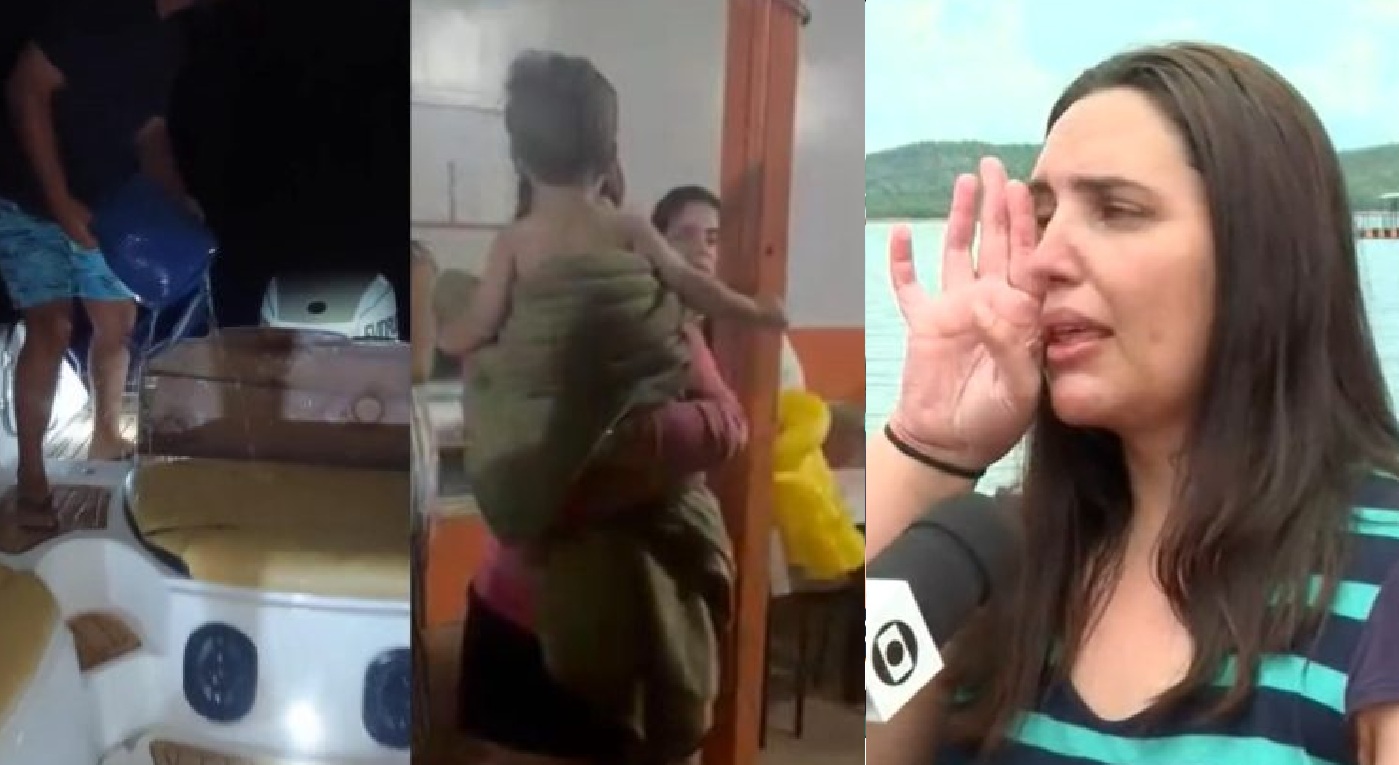 No momento mais crítico, Camila estava com o bebê no colo e afirma que não houve tempo de reação. “Eu tive que virar de costas, porque não dava para segurar. Eu estava com o neném no colo”, contou. Em seguida, segundo ela, o motor da lancha foi desligado e a embarcação virou quase que instantaneamente. “Ele desligou o motor e já virou. Não deu nem tempo de nada. A gente não soube nem o que fazer”, afirmou.