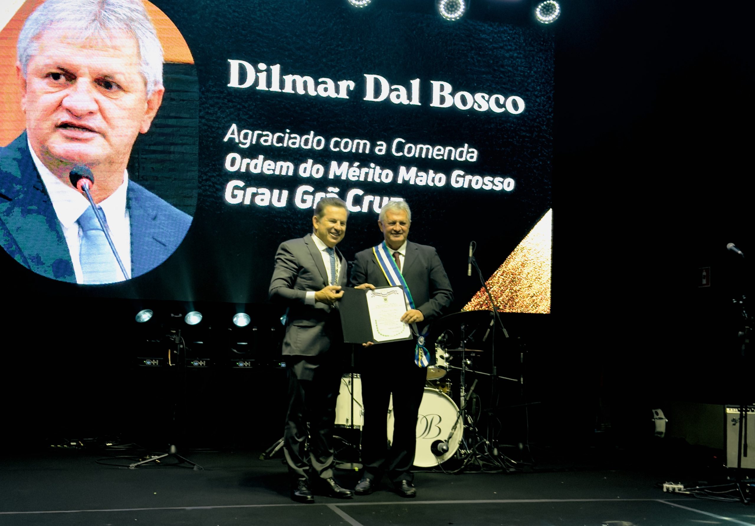 Em solenidade realizada na última sexta-feira (20), o governador Mauro Mendes (UNIÃO) homenageou personalidades que marcaram a trajetória pública e institucional do Estado. O ponto alto da cerimônia foi a entrega da Comenda da Ordem do Mérito Mato Grosso, no Grau Grã-Cruz, ao deputado estadual Dilmar Dal Bosco (UNIÃO), em reconhecimento aos seus relevantes serviços prestados ao Executivo e ao Legislativo.