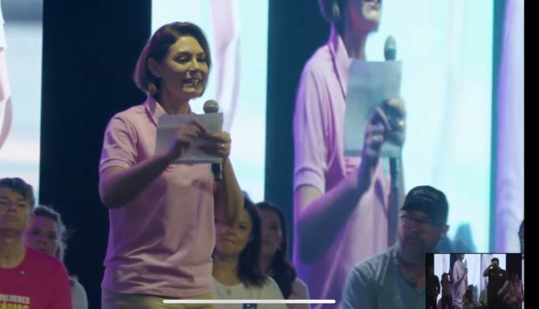 Ao discursar para o público, Michelle agradeceu pelos votos que o ex-presidente Jair Bolsonaro recebeu “em Mato Grosso do Sul” e foi corrigida imediatamente pela plateia. Percebendo o erro, ela tentou contornar a situação de forma bem-humorada.