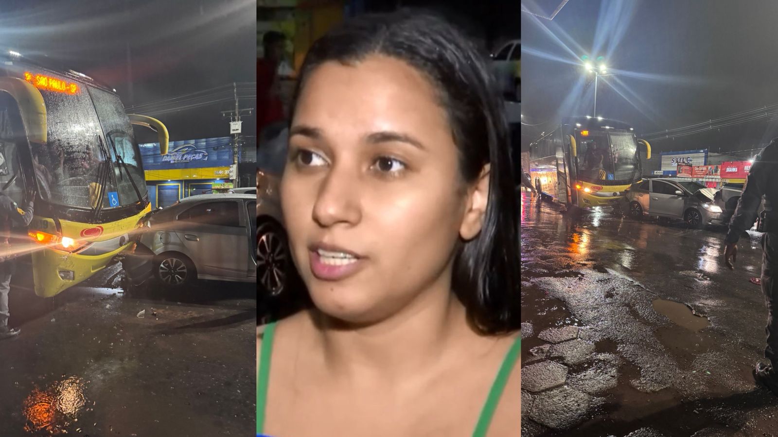 A colisão ocorreu enquanto chovia intensamente na capital. Os condutores aguardavam o sinal abrir quando perceberam que o ônibus da empresa Eucatur descia do viaduto do Coxipó em alta velocidade, vindo da região da Serra em direção ao centro. Sem conseguir frear, o veículo atingiu os carros e desencadeou o engavetamento.