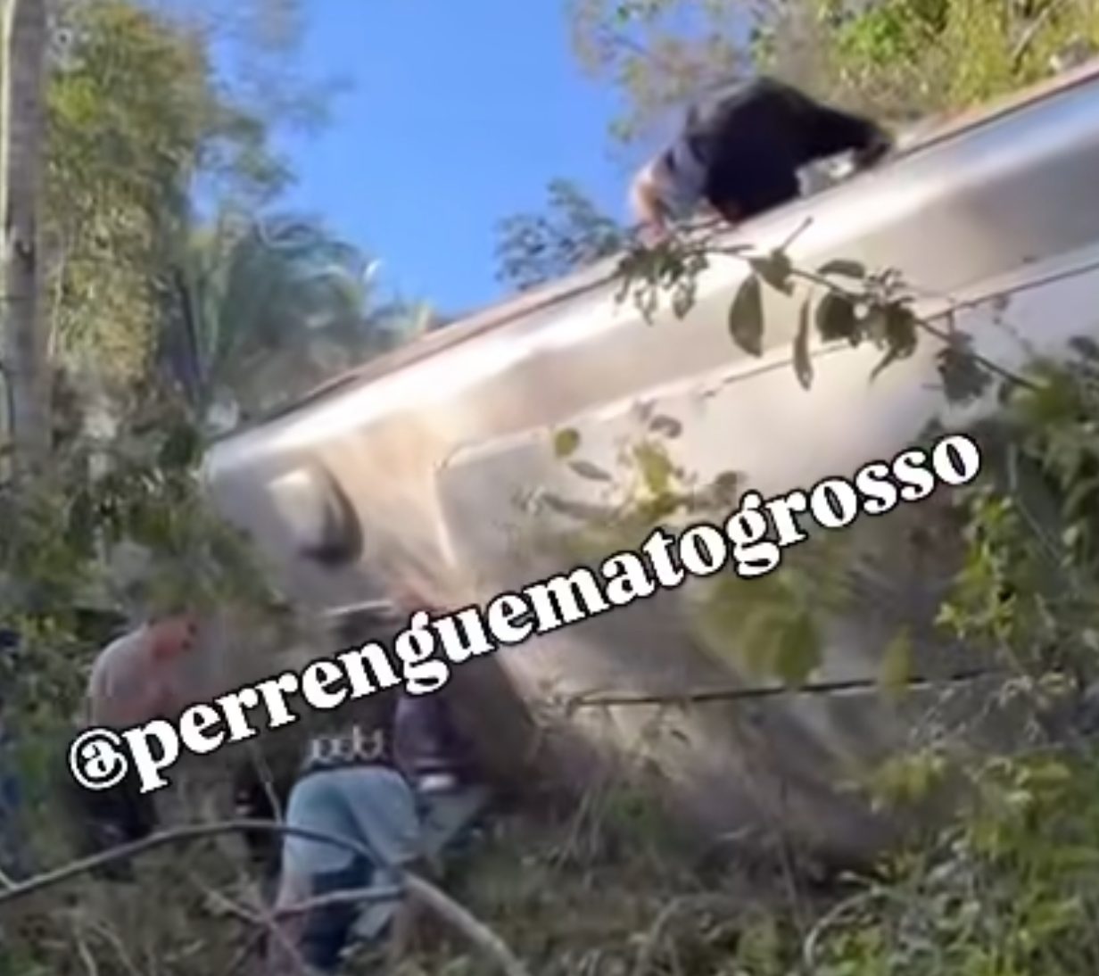 Um ônibus que transportava passageiros, incluindo crianças, tombou em uma ribanceira na BR-364, na Serra de São Vicente, em Cuiabá, no final da tarde desta sexta-feira (15).