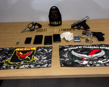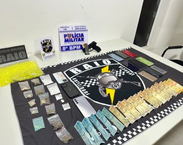 Durante a revista, foram encontradas 3 porções de cocaína. Diante da situação, a equipe se deslocou até a residência dela, já conhecida pelos militares. No local, que possui duas casas no mesmo terreno, outros 3 suspeitos foram flagrados. Ao perceberem a presença da polícia, tentaram fugir para o interior dos imóveis, mas foram contidos.