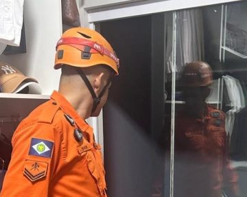 Ao chegar ao local, os policiais entraram no imóvel e conseguiram conter e imobilizar o suspeito. Durante a ação, foi constatado que a vítima apresentava perfurações no braço esquerdo e na mão direita, causadas durante a tentativa de se defender das agressões.