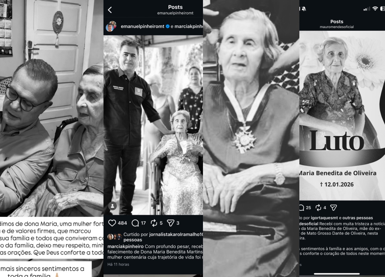 O prefeito de Cuiabá, Abilio Brunini, e a primeira-dama, Samantha Iris, enfatizaram que Dona Maria foi uma das “grandes referências morais” da cidade. O ex-prefeito Emanuel Pinheiro e Márcia Pinheiro também se solidarizaram, pontuando que sua lucidez e serenidade “atravessaram gerações”.