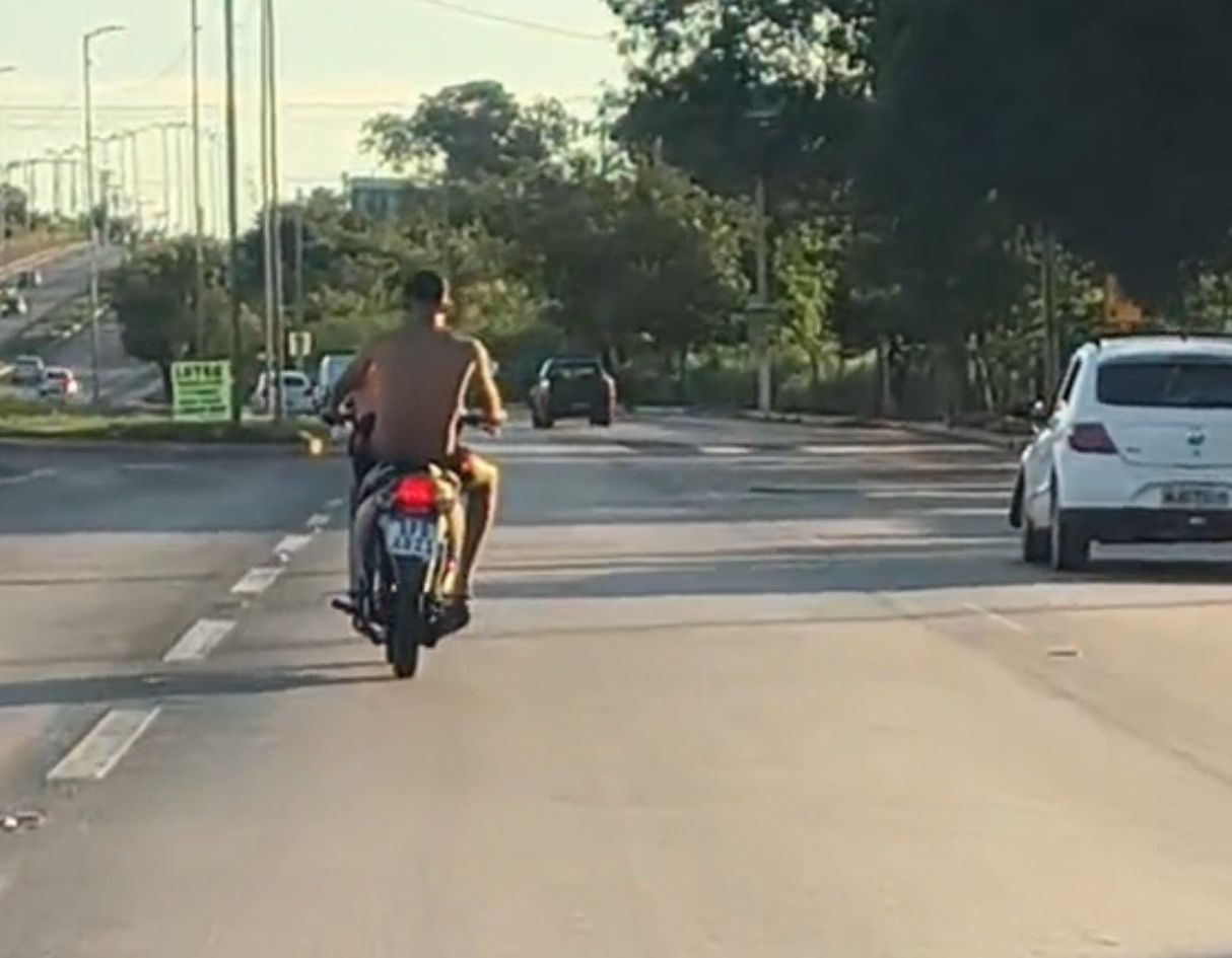 Vídeo registrado por um motorista mostra o condutor fazendo zig-zag pela via. Logo depois, o motociclista acabou perdendo o controle da motocicleta e caiu no canteiro que divide as pistas.