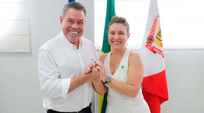 Sílvio Fidelis, secretário municipal de Governo nomeado há um mês, e a prefeita várzea-grandense Flávia Moretti