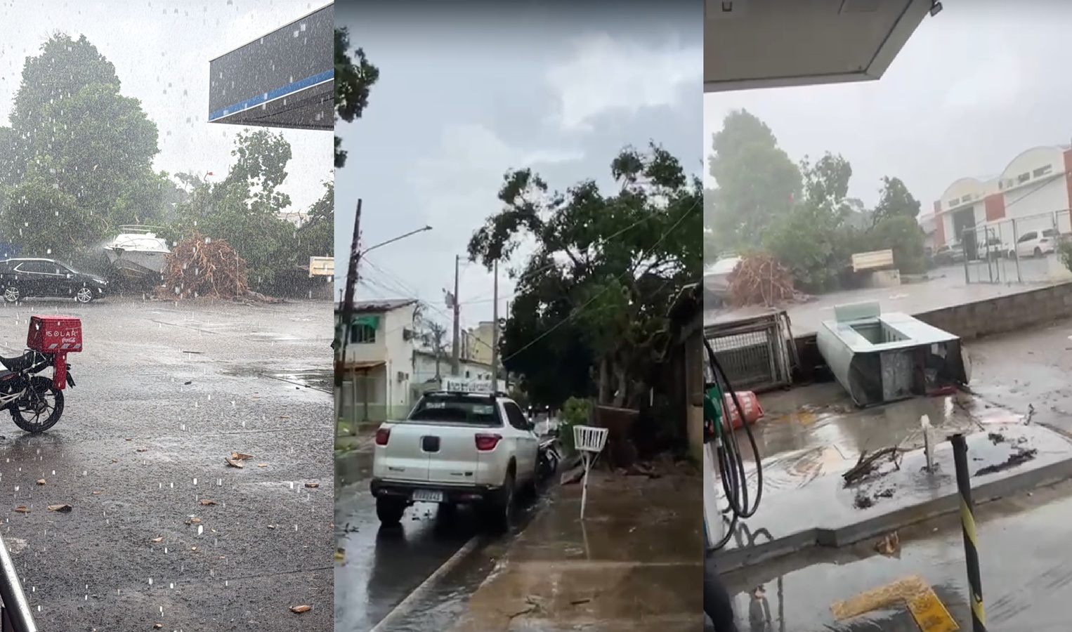 Vídeos enviados ao site FatoAgora mostram que, com a força do vento, uma bomba de combustível chegou a ser arrancada. As imagens também registram uma funcionária do posto correndo desesperada no momento da ventania. Até o momento, não há informações sobre feridos.