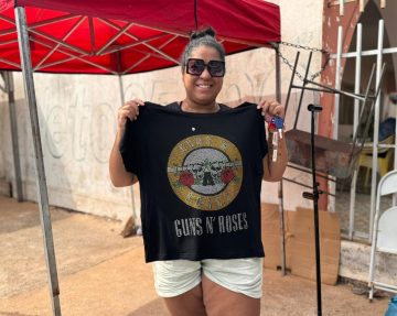 Vendedora aposta em camisetas do Guns e comemora vendas na arena