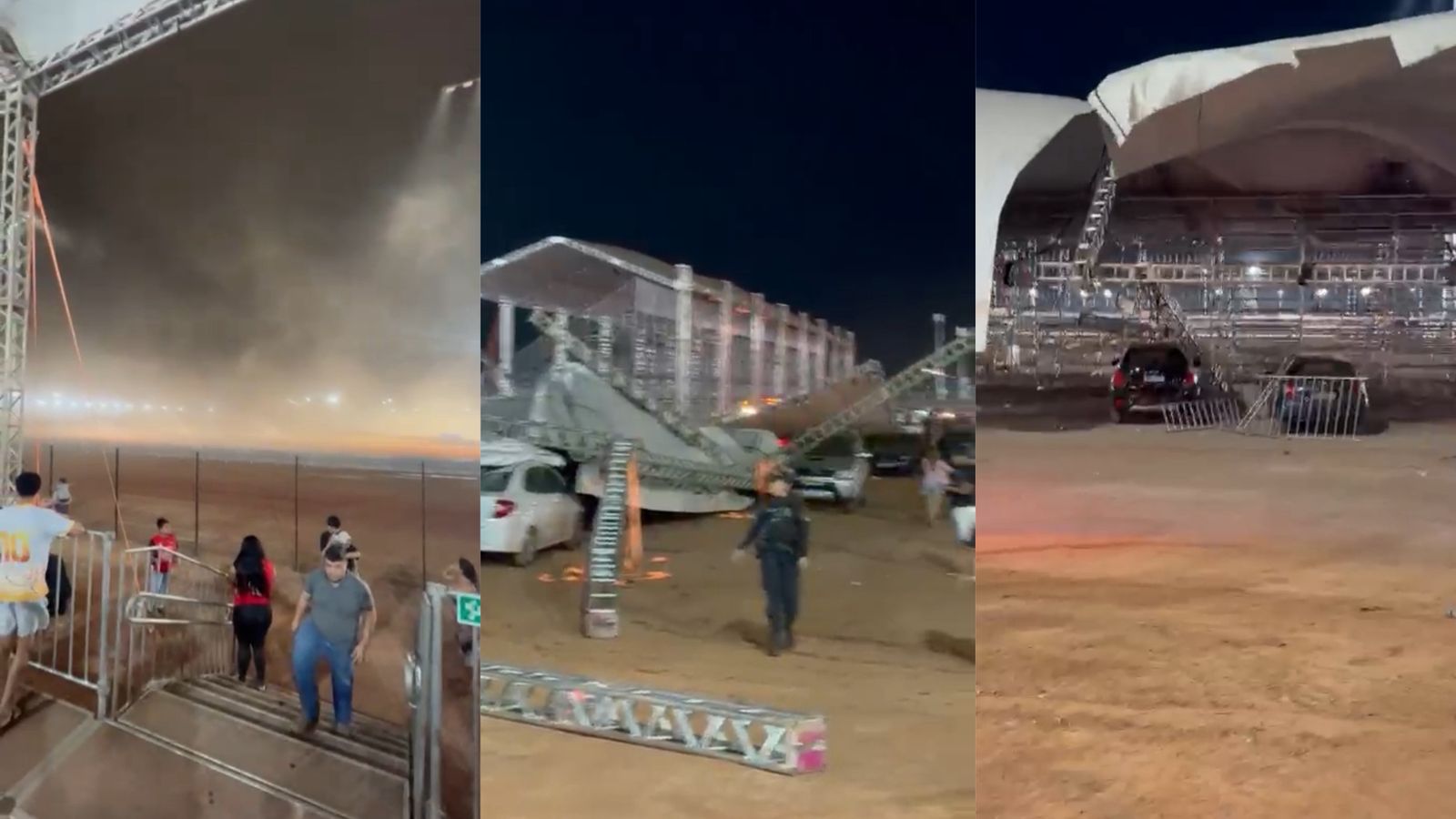 De acordo com vídeos que circulam nas redes sociais, a ventania, que chegou a cerca de 70 km/h, arrancou parte da cobertura das arquibancadas, que foi arremessada sobre veículos estacionados. A cena provocou correria entre visitantes e trabalhadores. Os boxes proVentania derruba estruturas e gera pânico em treino da Stock Car; vídeovisórios onde estavam os carros de competidores como Rubens Barrichello e Felipe Massa também foram atingidos, e as imagens mostram pessoas em pânico tentando se abrigar enquanto a estrutura cedia.