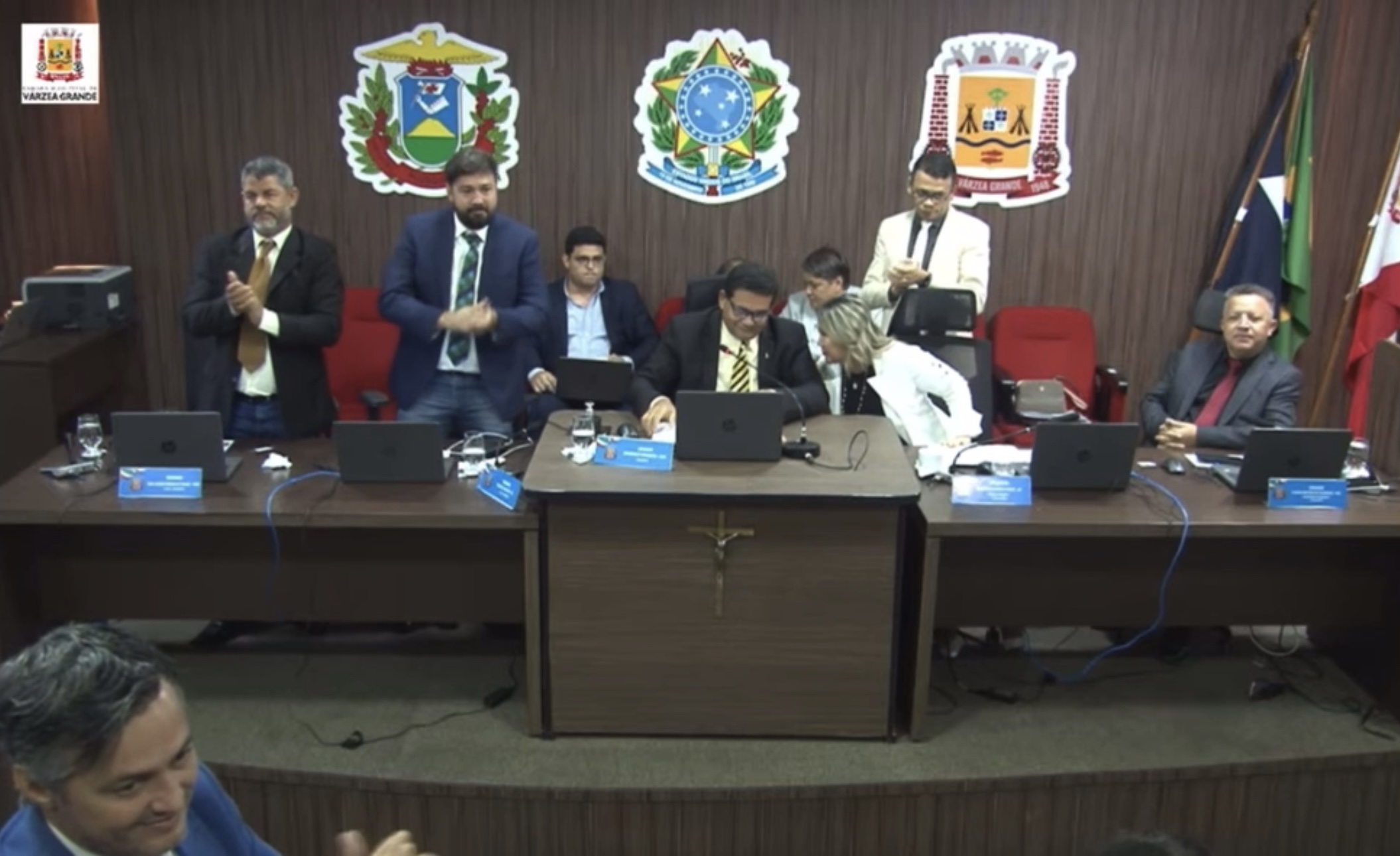 O presidente da Câmara Municipal de Várzea Grande, vereador Wanderley Cerqueira (MDB), e a vereadora Rosy Prado (União Brasil) foram flagrados ironizando os servidores da saúde após a aprovação do Projeto de Lei nº 18/2025, que fixa o piso salarial dos agentes comunitários de saúde e de combate às endemias. Sem perceber que o microfone estava aberto, os parlamentares trocaram comentários em tom de deboche enquanto os profissionais comemoravam a conquista no plenário na sessão desta quarta-feira (18).