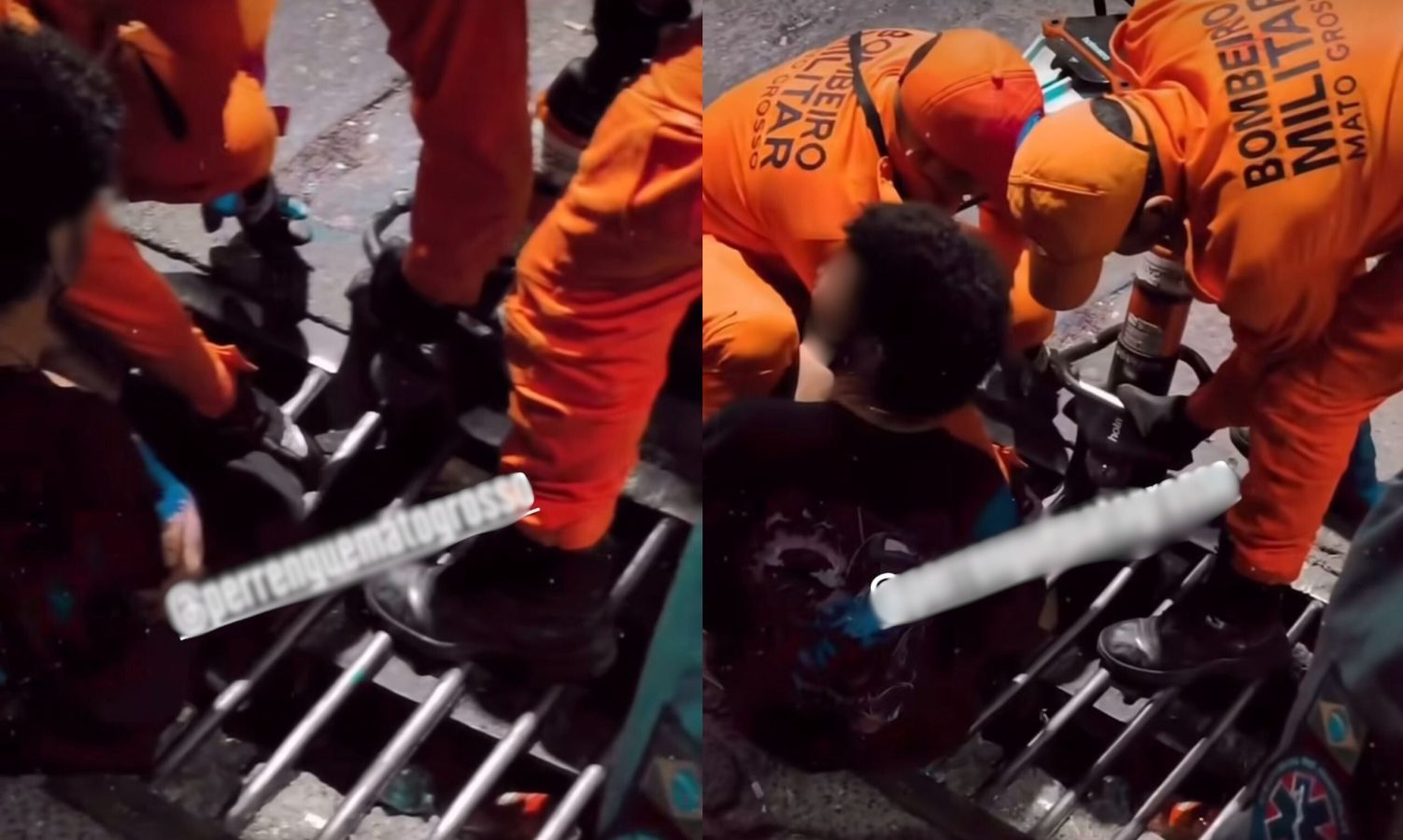 Imagens que circulam nas redes sociais mostram o momento em que os militares fazem a abertura do ferro onde a perna do rapaz estava presa. Foliões que assistiam o resgata fizeram um cordão humano em volta do local para que as equipes pudessem fazer o trabalho em meio à multidão.