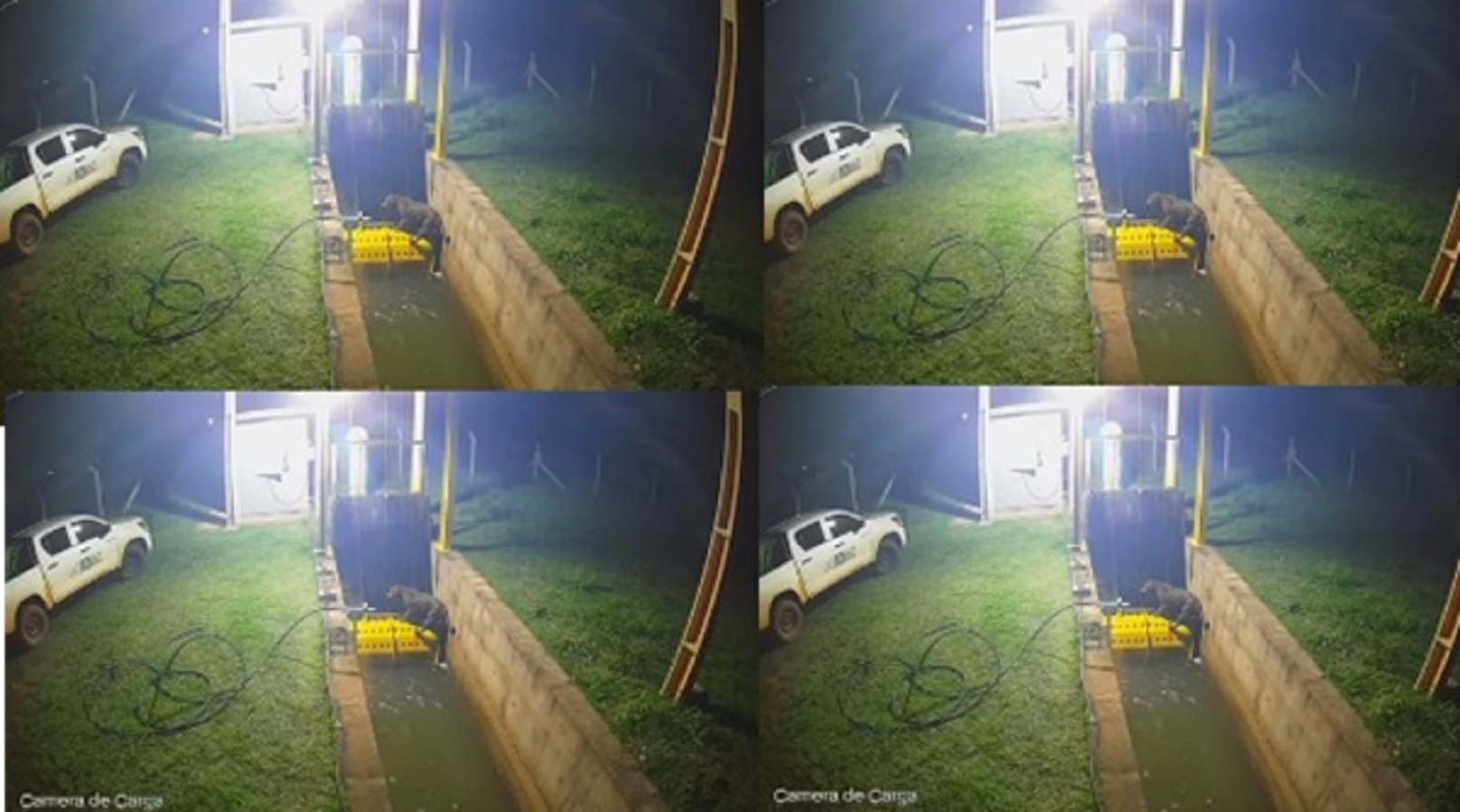 Câmeras de segurança registraram o momento impressionante em que uma onça-pintada adulta foi resgatada de dentro de um canal de água em uma Pequena Central Hidrelétrica (PCH), no município de Juscimeira, na tarde de quinta-feira (19).